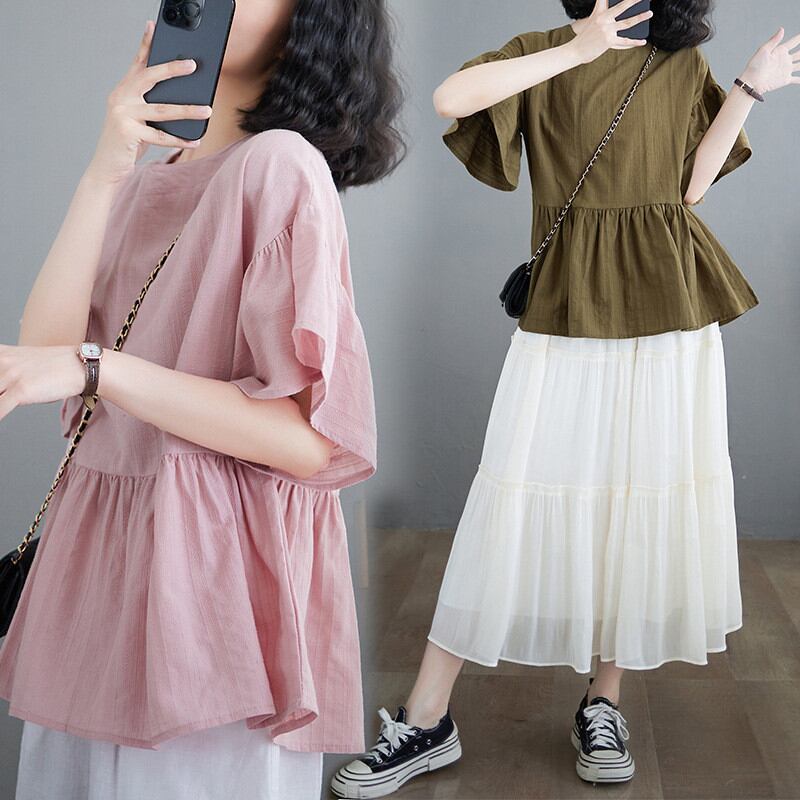 ◎【送料無料】2026年夏新作 ブラウス トップス レディース レーストップス ラウンドネック 気質 着回し