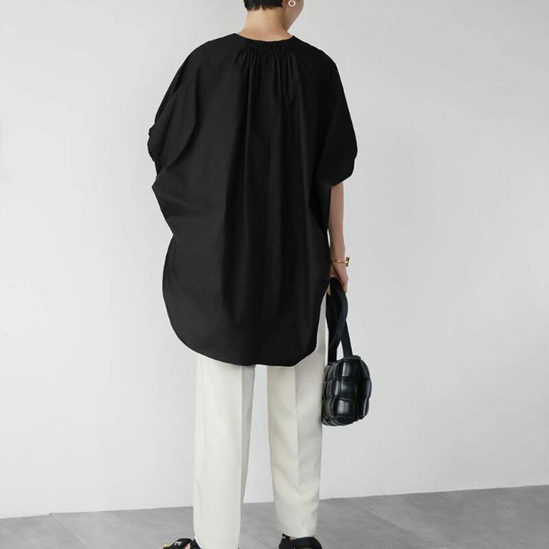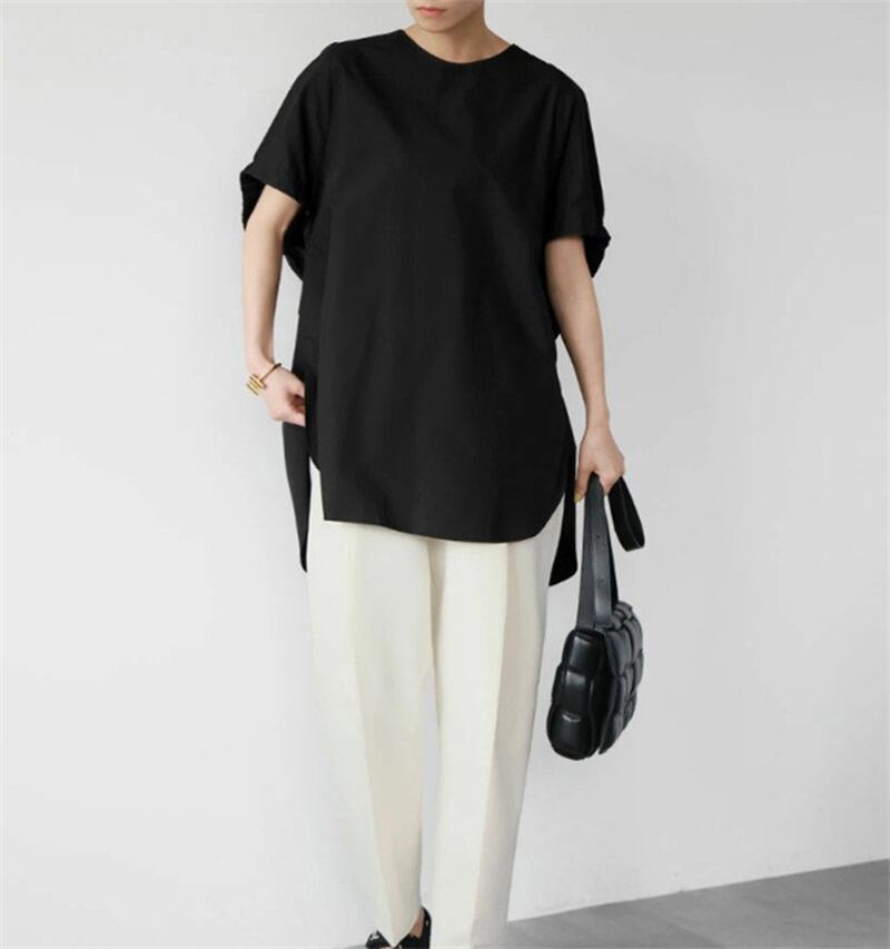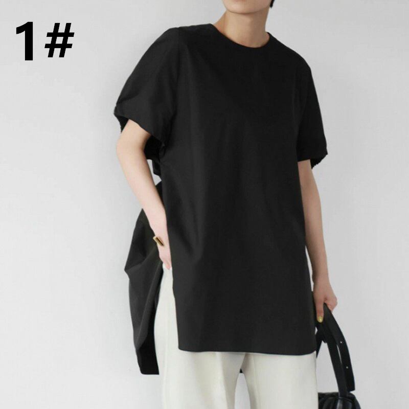 ◎【送料無料】2024春夏新作 トップス Tシャツ ラウンドネック 半袖 レディース 体型カバー 無地