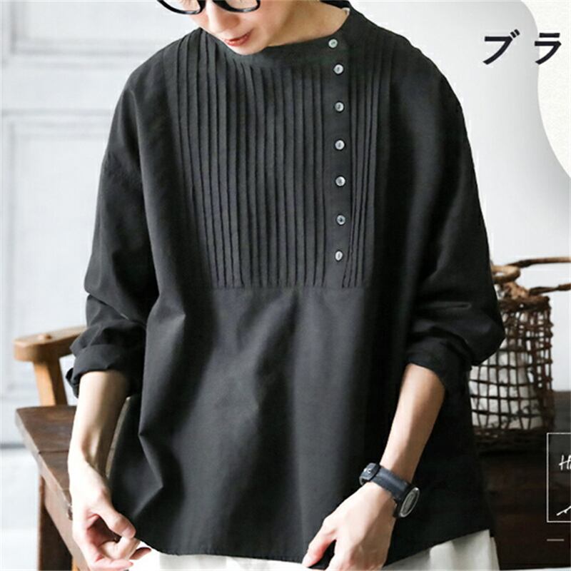 ◎【送料無料】2024春夏新作 トップス シャツ 長袖 ラウンドネック カジュアル 体型カバー レディース