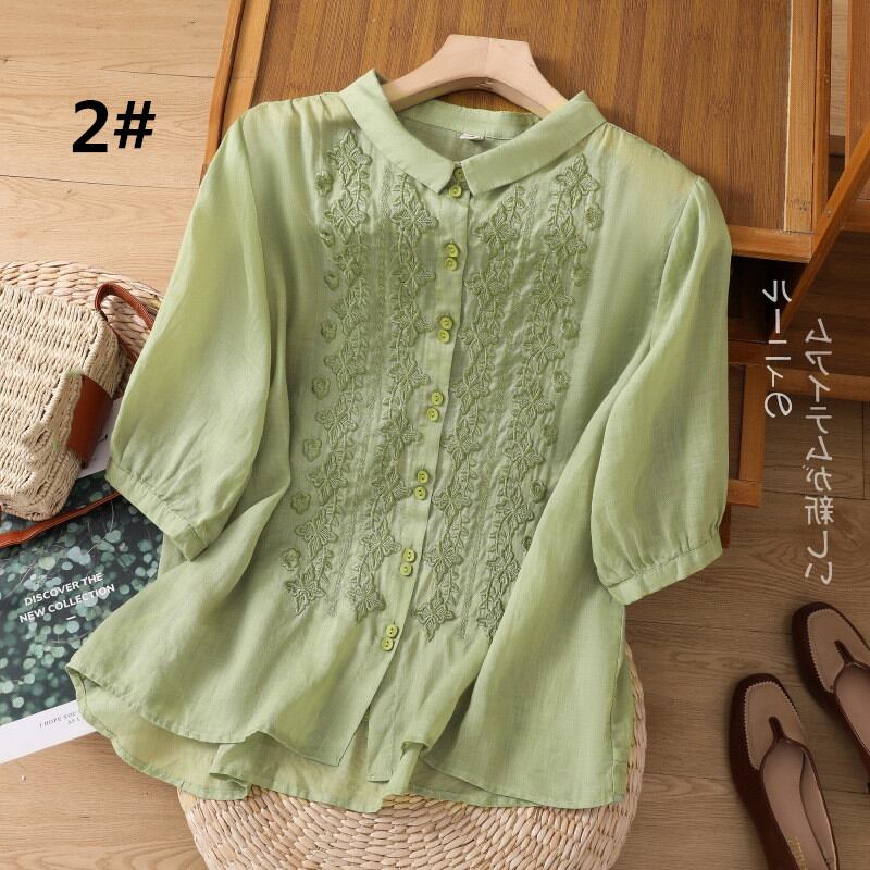 ◎【送料無料】2026年夏新作 ブラウス シャツ レディース 綿麻ブラウス レトロ 可愛い