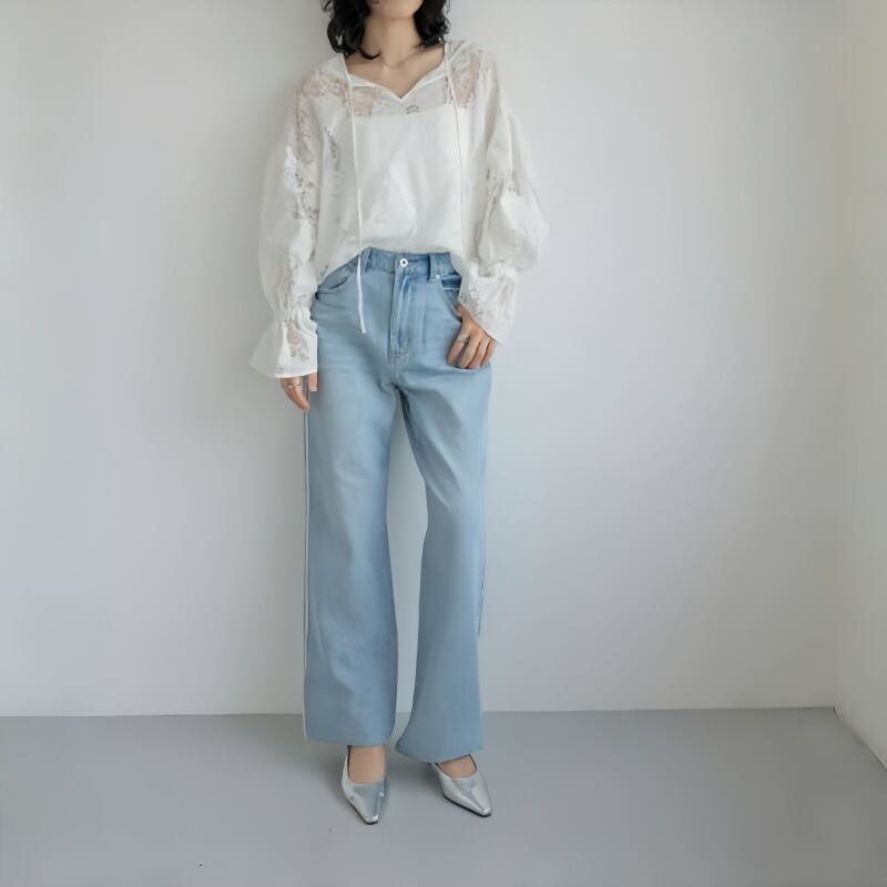 ◎【送料無料】2024春夏新作 トップス Vネック レース ファッション 体型カバー レディース おしゃれ