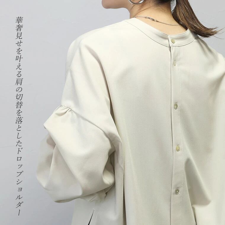 春秋にピッタリな素材のトップスは今季注目のアイテム。