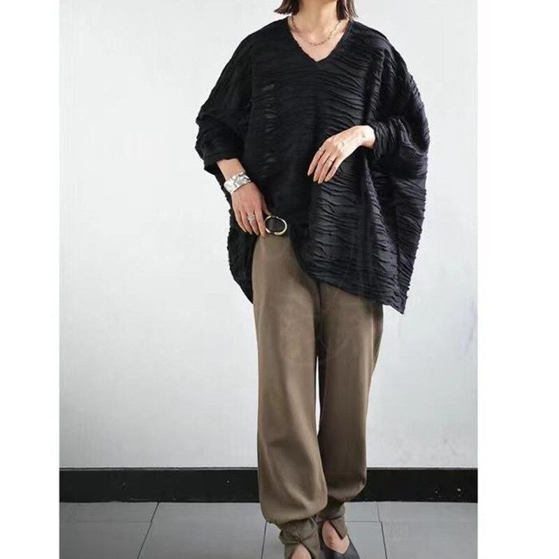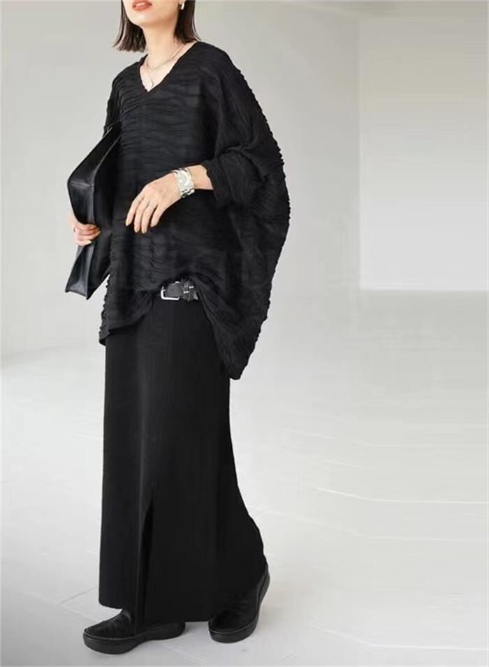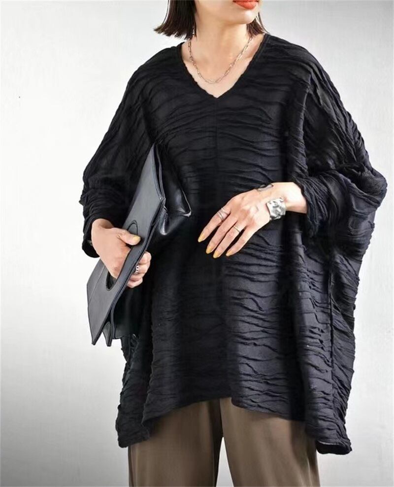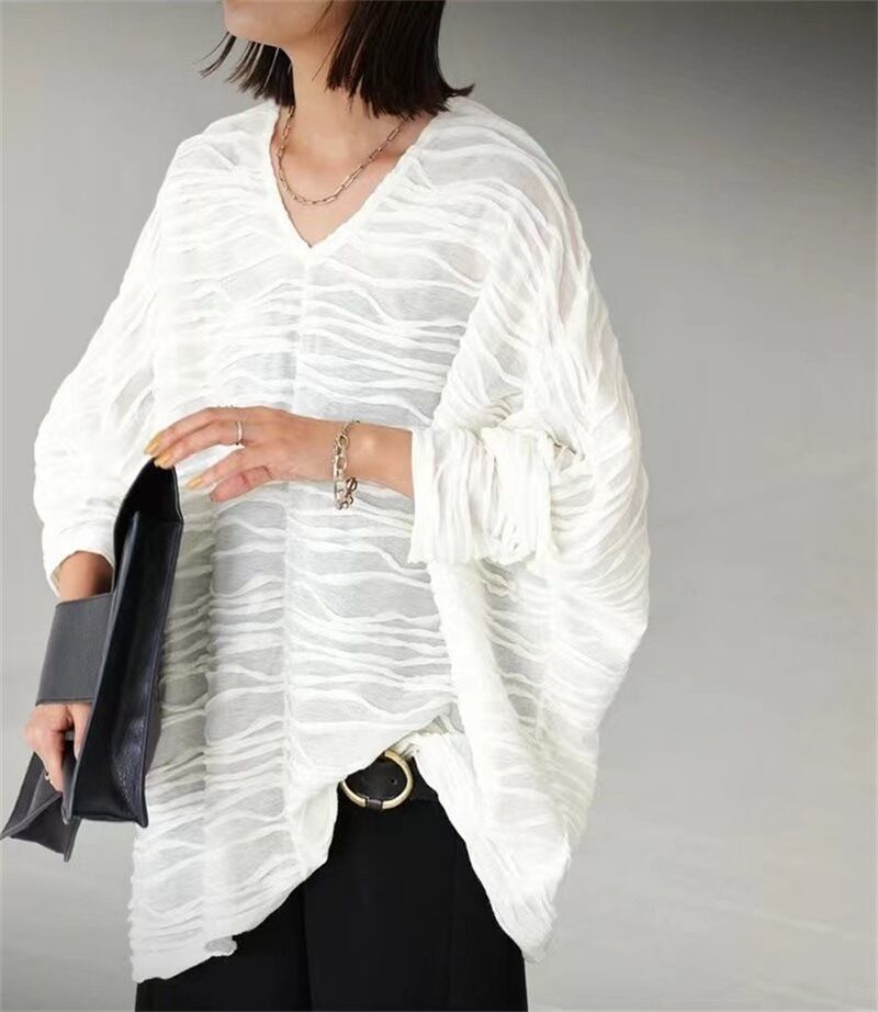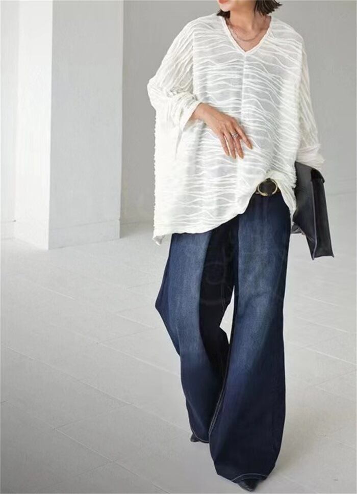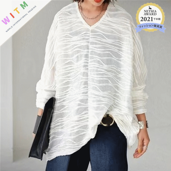 ◎【送料無料】2023夏新作 トップス Vネック 七分袖 体型カバー フレア袖 レディース