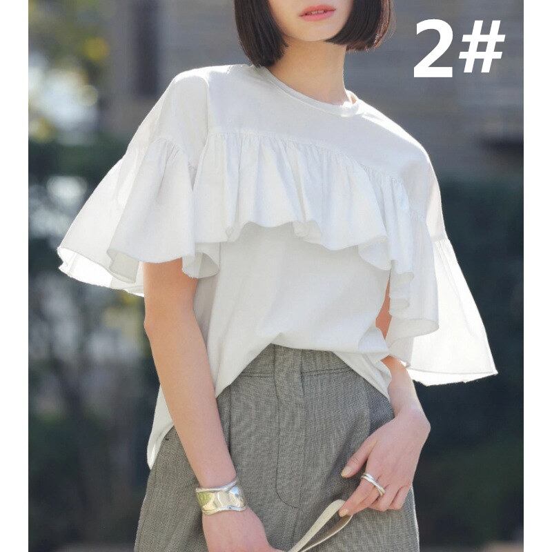 ◎【送料無料】2023夏新作 トップス ラウンドネック 三分袖 体型カバー フレア袖 レディース