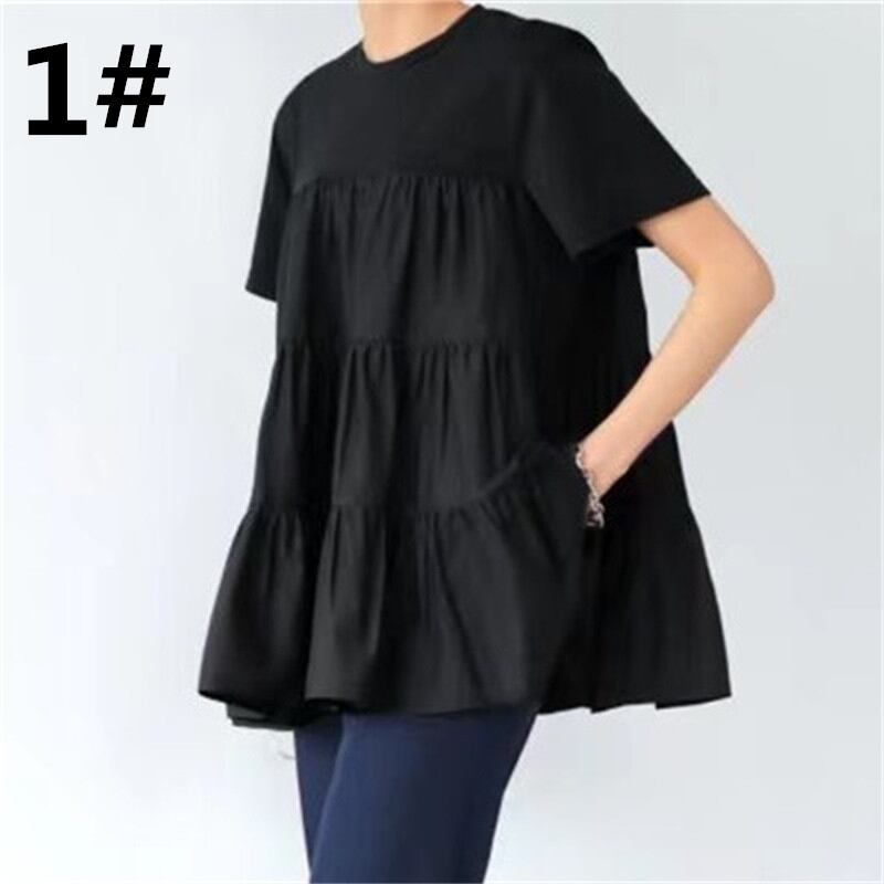 ◎【送料無料】2023春夏新作 トップス ラウンドネック 三分袖 体型カバー レディース