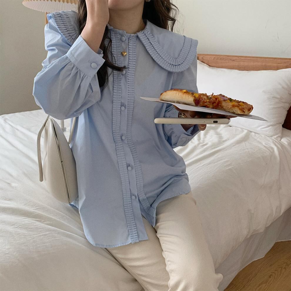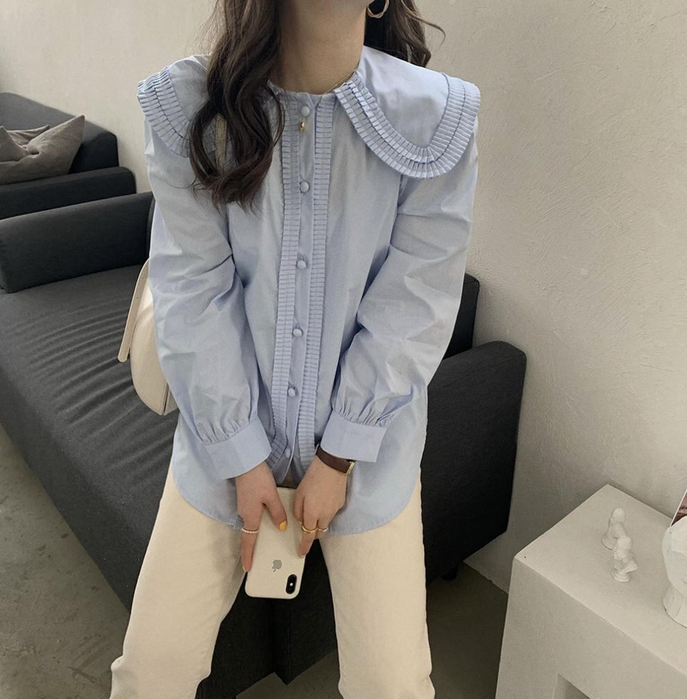 ◎【送料無料】春夏新作 トップス フレア襟 フレア袖 長袖 体型カバー 着回し レディース