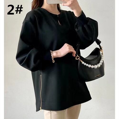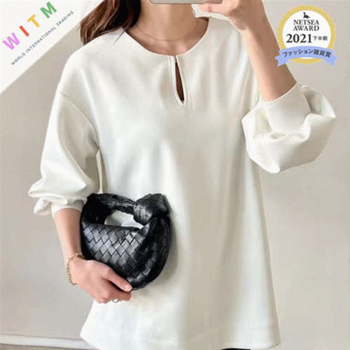 ◎【送料無料】2023春夏新作 トップス ラウンドネック 長袖 体型カバー 着回し 通勤 レディース