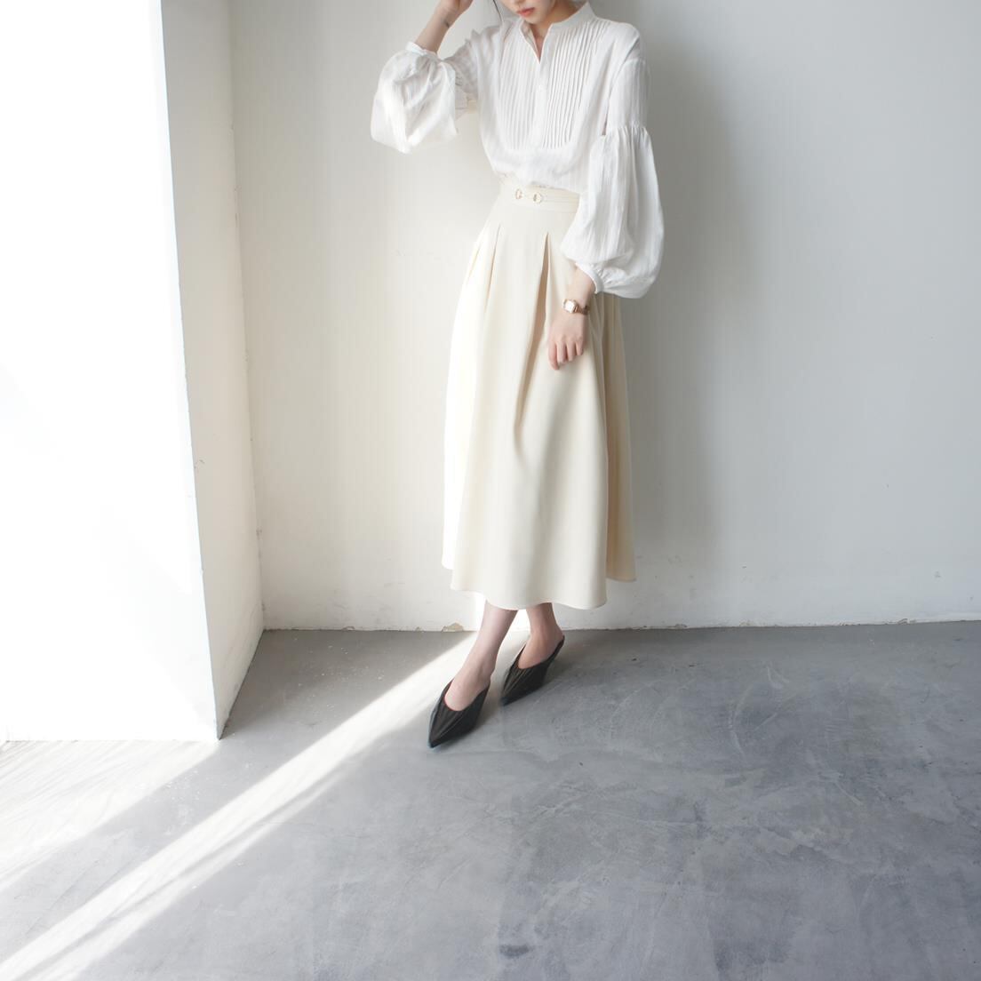 ◎【送料無料】2023春夏新作 トップス フレア袖 レトロ感 長袖 体型カバー 着回し レディース