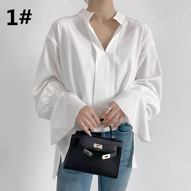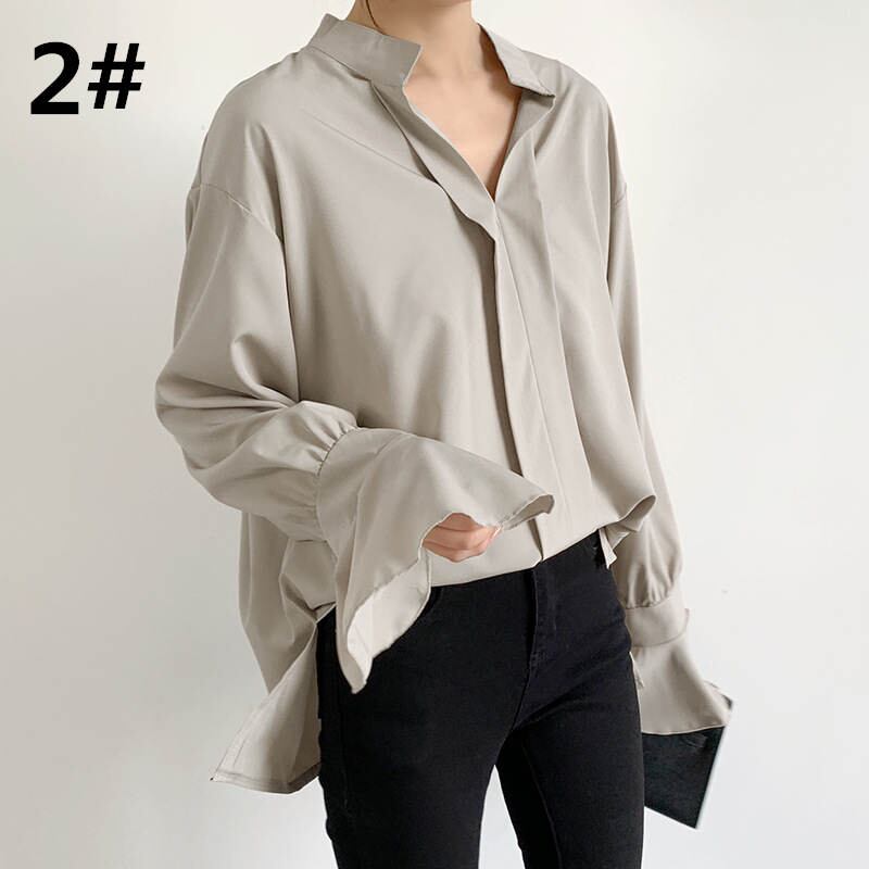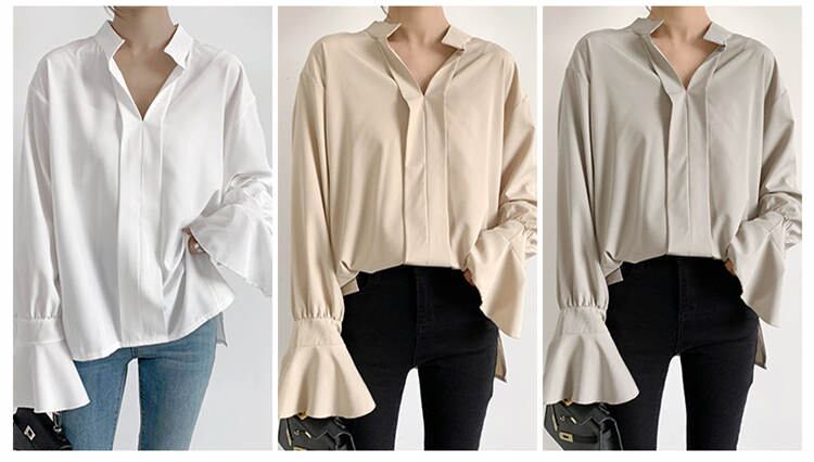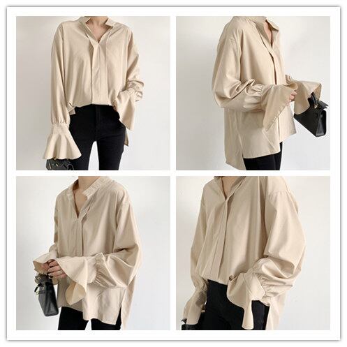 ◎【送料無料】2023春夏新作 トップス フレア襟 ラウンドネック 長袖 体型カバー フレア袖 レディース