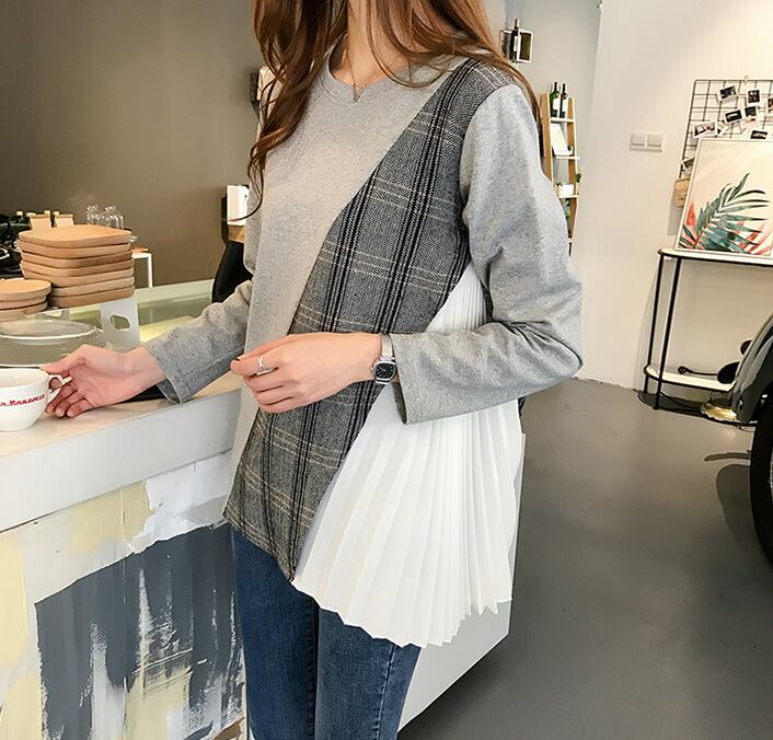 ◎【送料無料】2023春夏新作 トップス 切替 ラウンドネック 長袖 体型カバー 着回し レディース