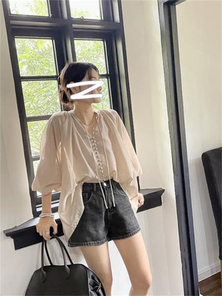 ブラウス Vネック 上品映え ゆったりする 快適である 新品 上着 長袖 シャツ