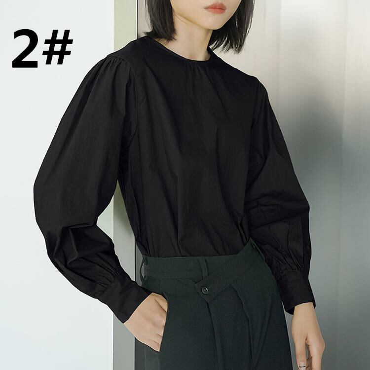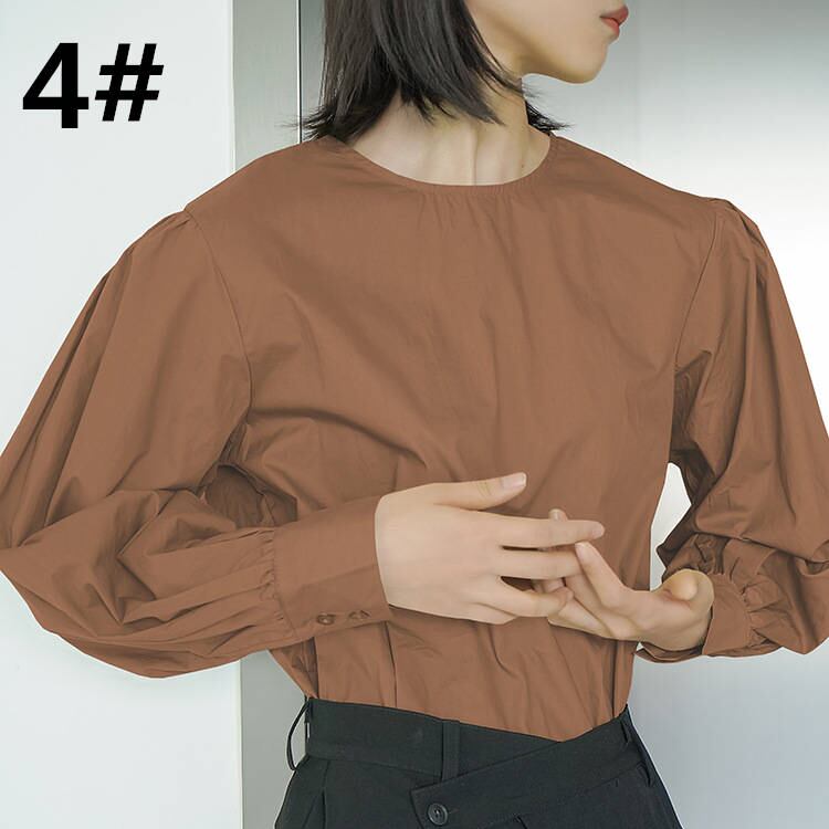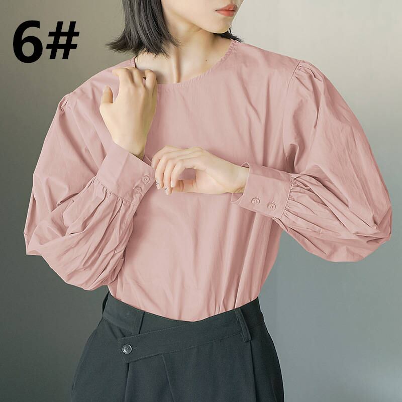 ◎【送料無料】全6色 トップス 長袖シャツ ラウンドネック 体型カバー 大人可愛い レディース