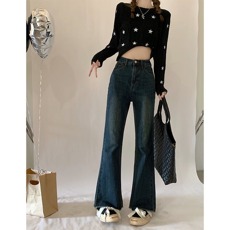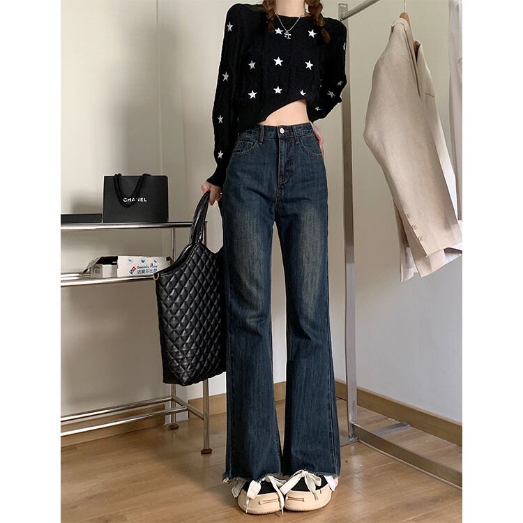 ◎【送料無料】気質 ハイウエスト ワイドパンツ バリ つなぎ ジーンズ 新品 星 ロングパンツ