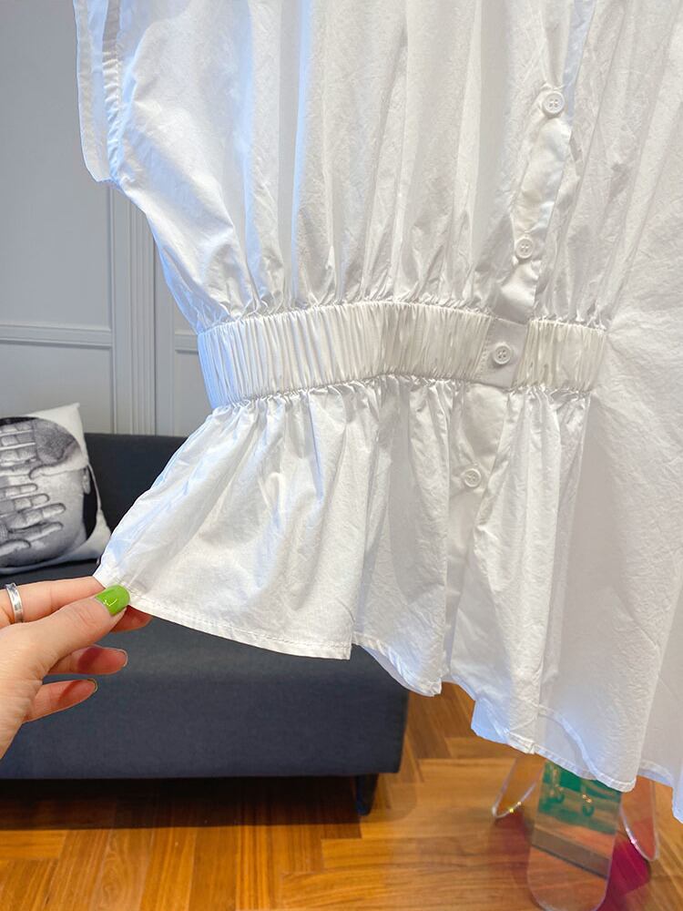 ◎【送料無料】不規則 トップス シャツ フレア襟 ブラウス 体型カバー おしゃれ 大人可愛い 韓国風