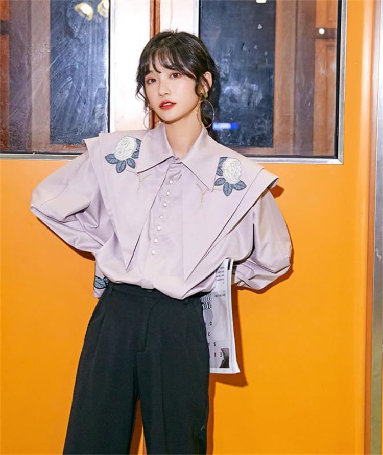 ◎【送料無料】レトロ シャツ 上品映え 上着 コート トレンド 薔薇 刺繍 短いスタイル 長袖 ゆったりする
