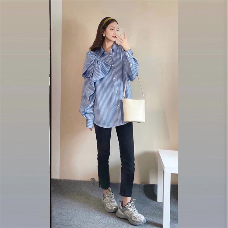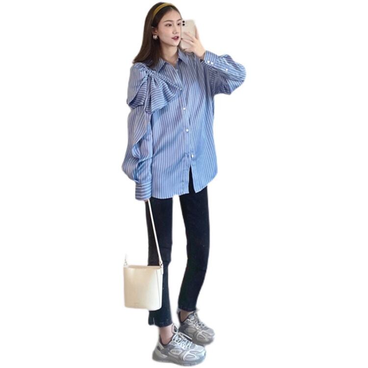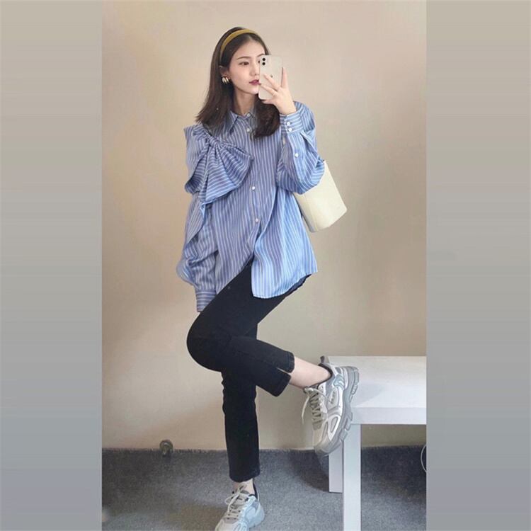 ◎【送料無料】ストライプ シャツ デザインセンス 蝶ネクタイ 快適である 上品映え エレガント スリム