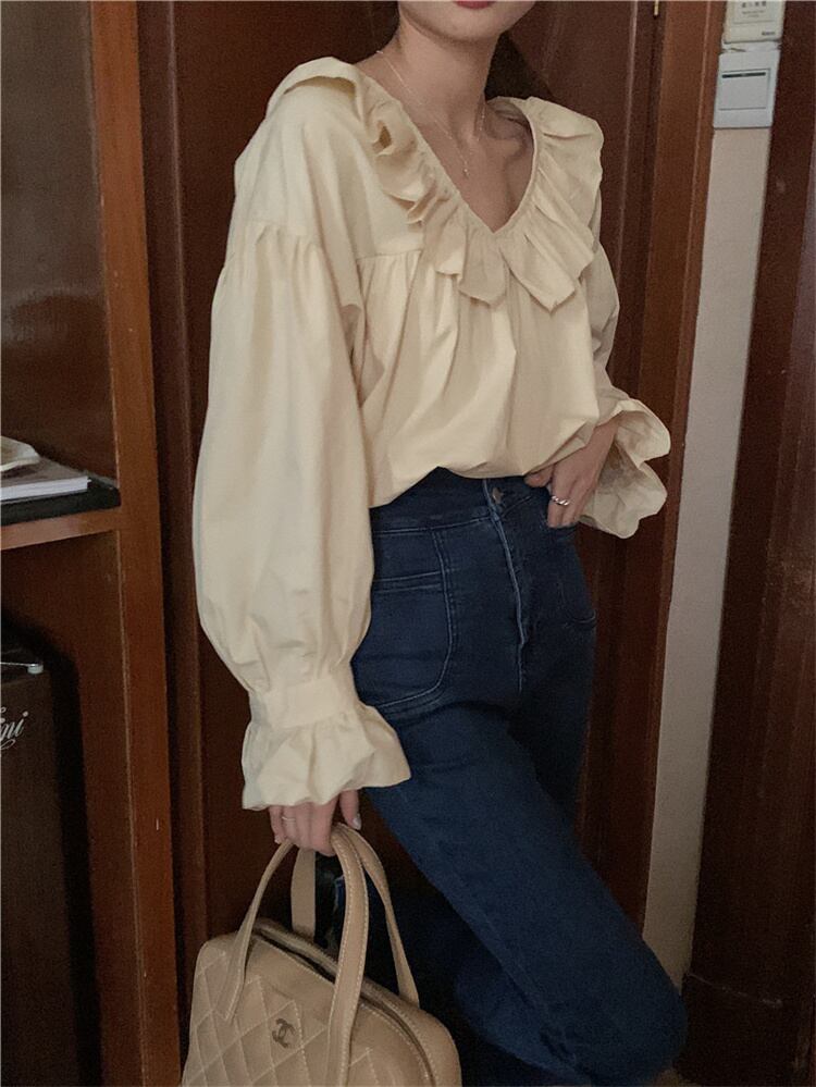 Vネック フリル トレンド 快適である sweet系 上着 トップス スリム 可愛い シャツ ブラウス