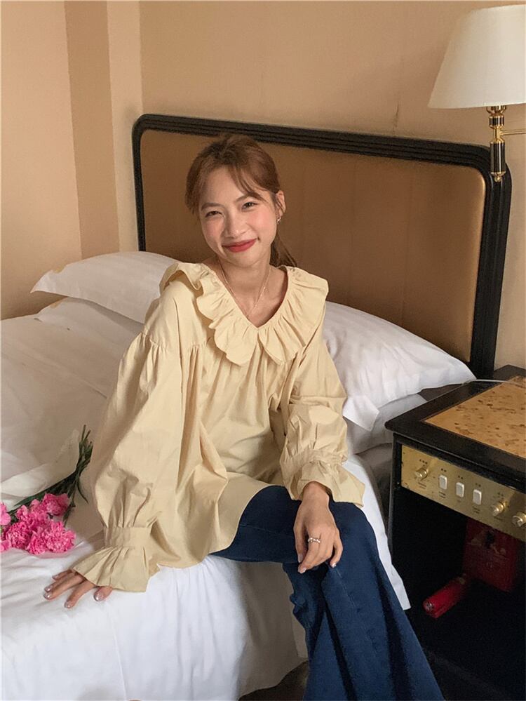 ◎【送料無料】Vネック フリル トレンド 快適である sweet系 上着 トップス スリム 可愛い シャツ ブラウス