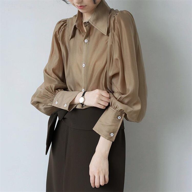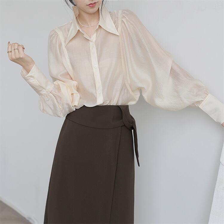 2022春と秋 スリム 新しい 大人気 トップス レトロ ドルマンスリーブ 怠惰な風 シャツ