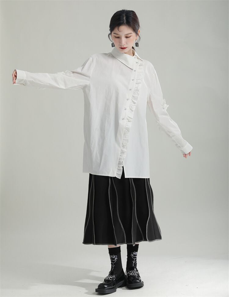 ◎【送料無料】改良 中華 2022年秋 新作 フリル アシンメトリーカラー 中長セクション シャツ スリム トップス