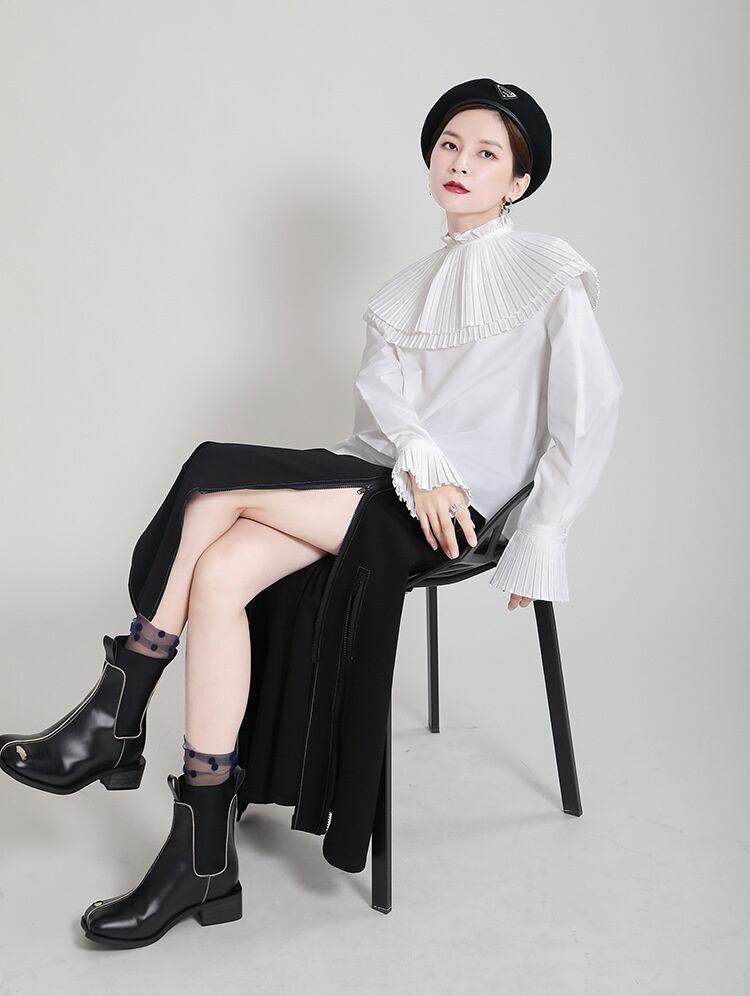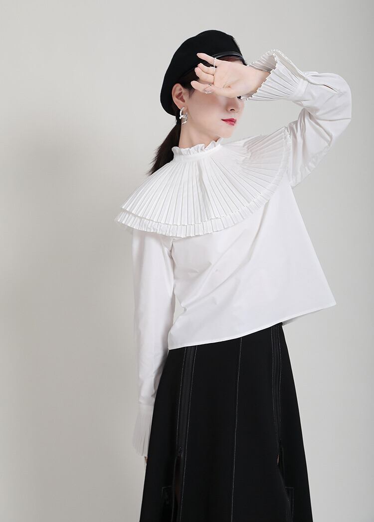 ◎【送料無料】ラウンドネック 2点セット トップス フリル デザインセンス 怠惰な風 シャツ ピュアカラー
