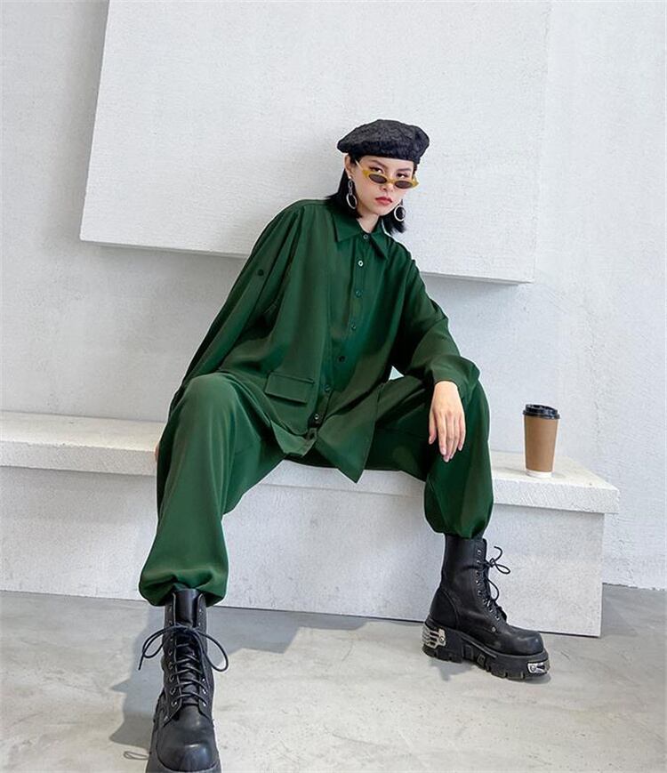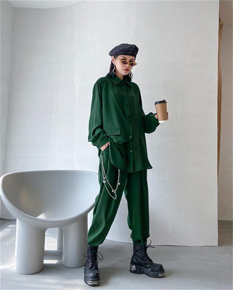 ◎【送料無料】2点セット シャツ カジュアル 快適である 2022年春 秋 ゆったりする イレギュラー ストレートパンツ