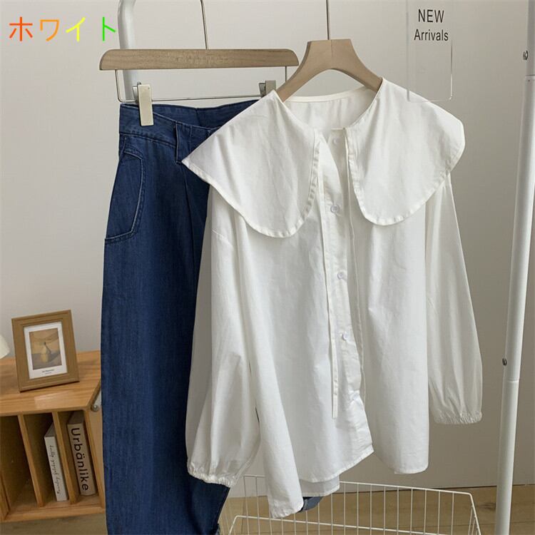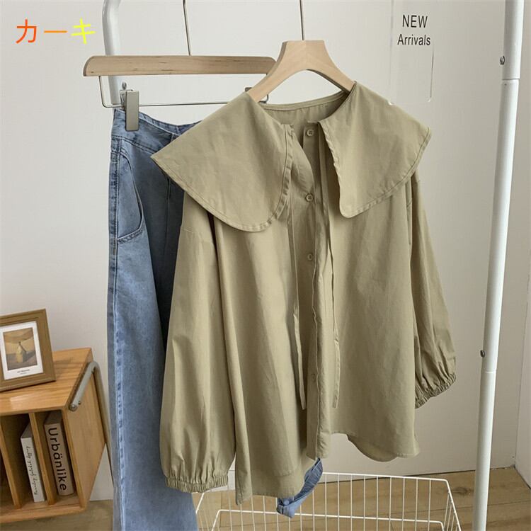 トップス カジュアル シンプル 長袖 蓮の葉衿 綿 シャツ 初秋 ゆったりする トレンド