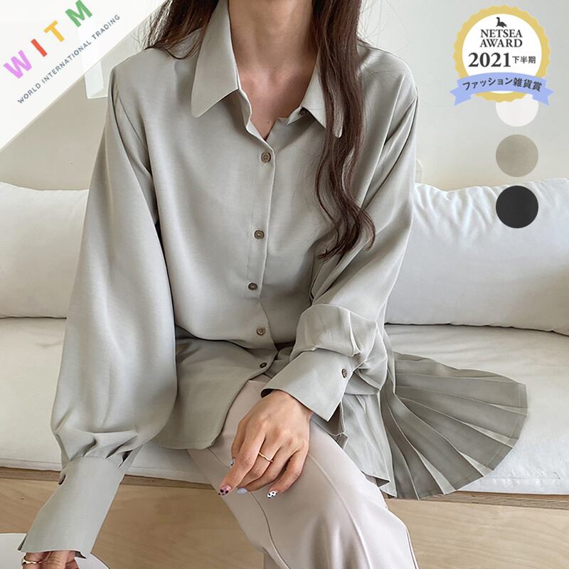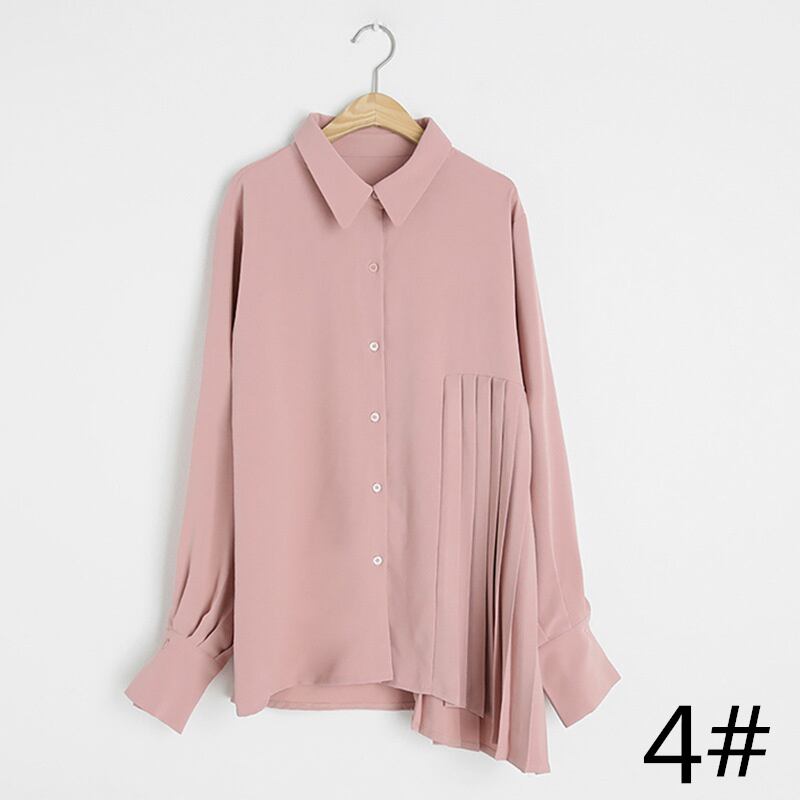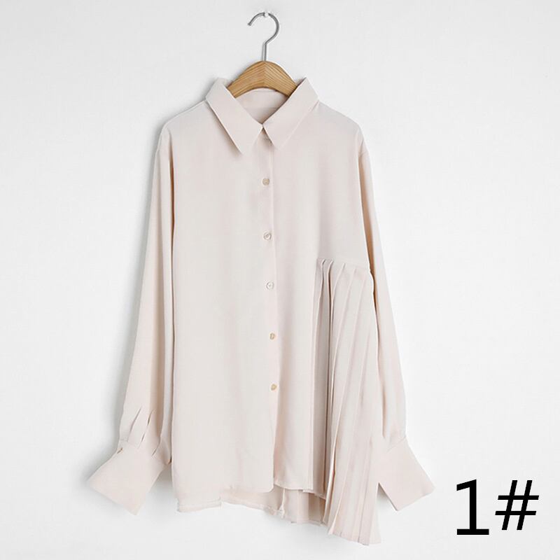 ◎【送料無料】2022秋新作 長袖シャツ ブラウス 不規則 レディース プリーツ 体型カバー おしゃれ