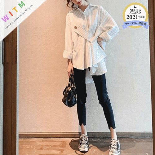 ◎【送料無料】ワイシャツ 体型カバー トップス 着回し ラウンドネック 韓国風 おしゃれ 通勤 レディース