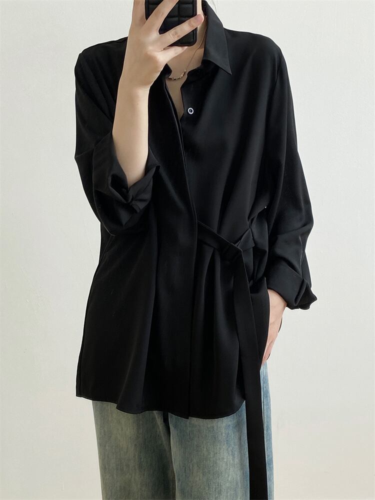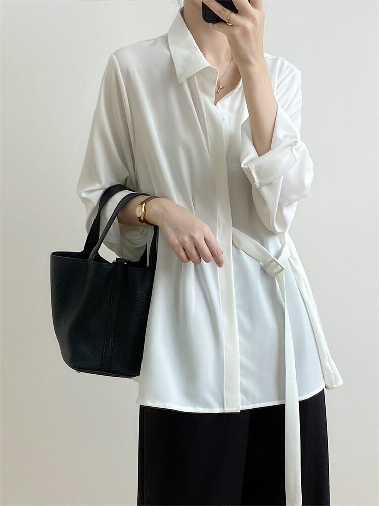 ◎【送料無料】ピュアカラー エレガント 秋 デザインセンス 長袖 シャツ 2022新作 ゆったりする スリム レース