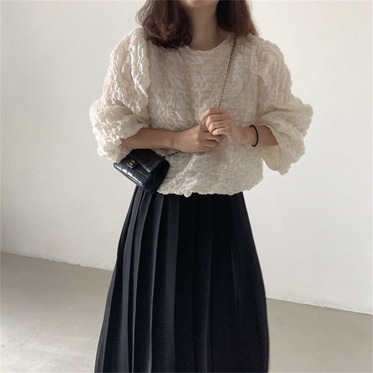 ◎【送料無料】パフスリーブ 快適である シンプル シャツ トレンド sweet系 トップス 上着 気質 長袖 ピュアカラー
