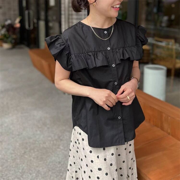 ストライプ フォールド キクラゲ シャツ ラウンドネック ウェーブ フリル トップス 大人気 快適である