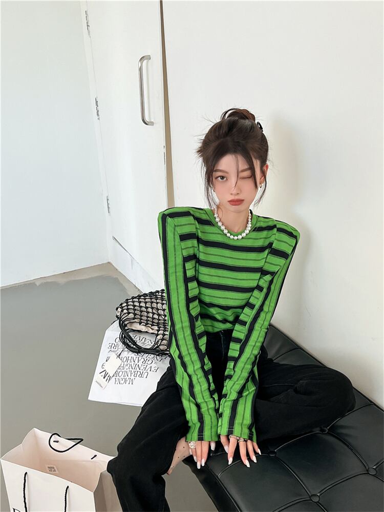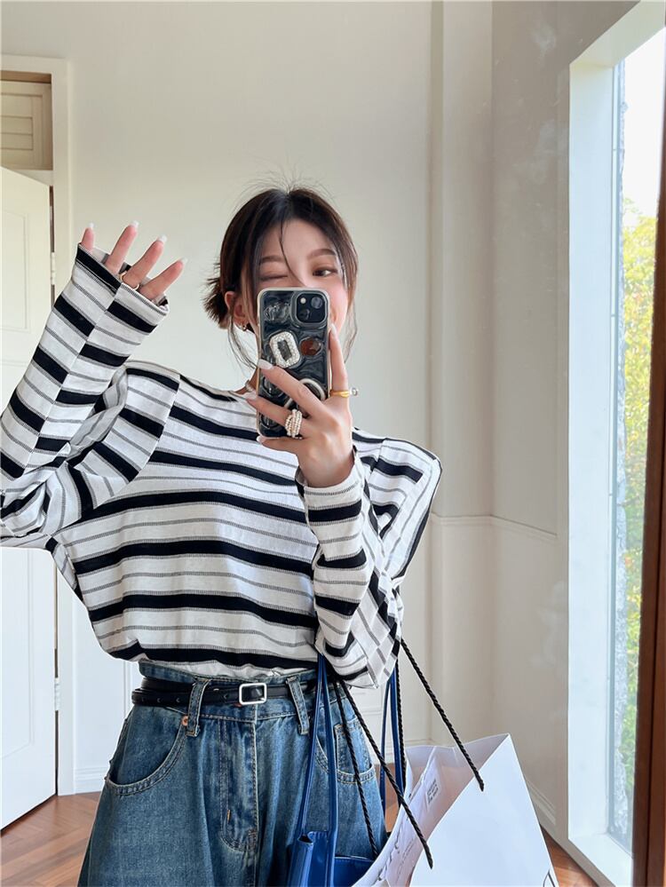 ◎【送料無料】ベースシャツ スリム 気質 大人気 長袖 ボーダー ラウンドネック 肌にやさしい