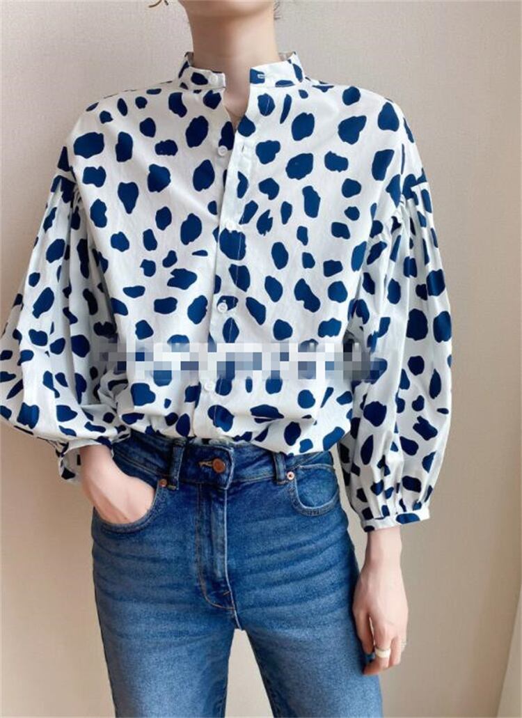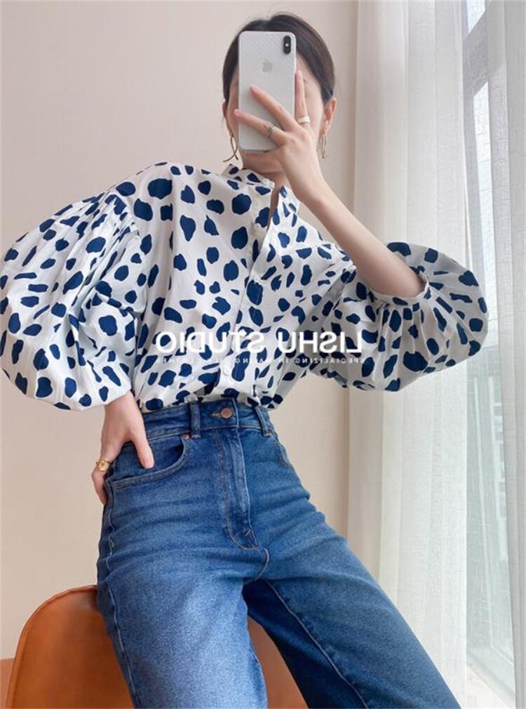 パフスリーブ シャツ ゆったりする ファッション フォーリンスタイル ドット プリント トップス