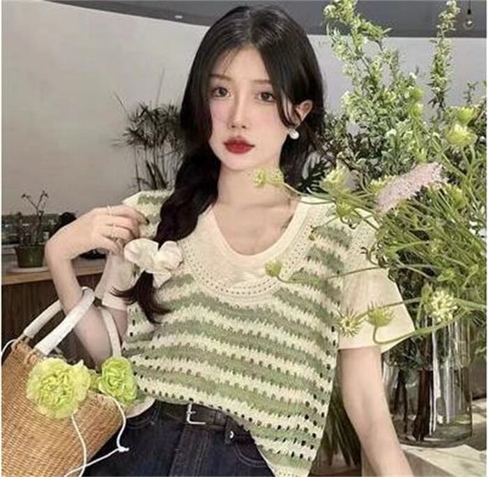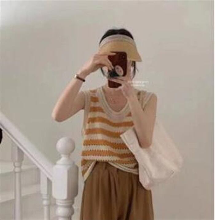 ◎【送料無料】店長推薦 黒と白のストライプ/ホローアウト/ニットベスト/サスペンダー/ノースリーブ/ベスト/トップス