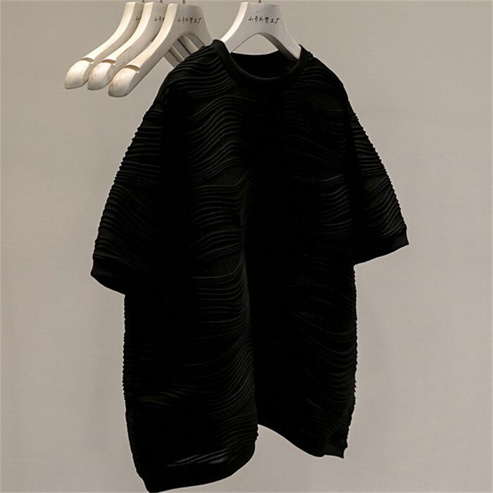 格好いい ウェーブパターン/半袖/Tシャツ/オールマッチ/イン/タイド/ハイクオリティ/ハーフスリーブ/トップ