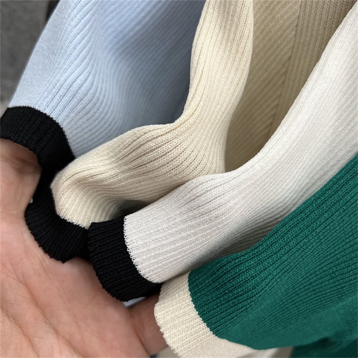 ◎【送料無料】韓国大人気 コントラストカラー/ラペル/スウィート/編み物/スリムフィット/半袖/Tシャツ/トップス