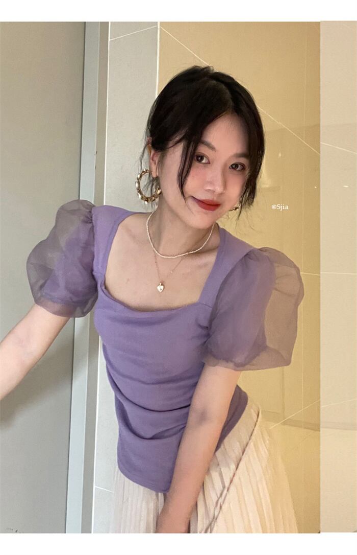 ◎【送料無料】高レビュー可愛い スクエアネック/シャツ/女性/夏/ウエスト/ショート/ウエスタンスタイル/トップ
