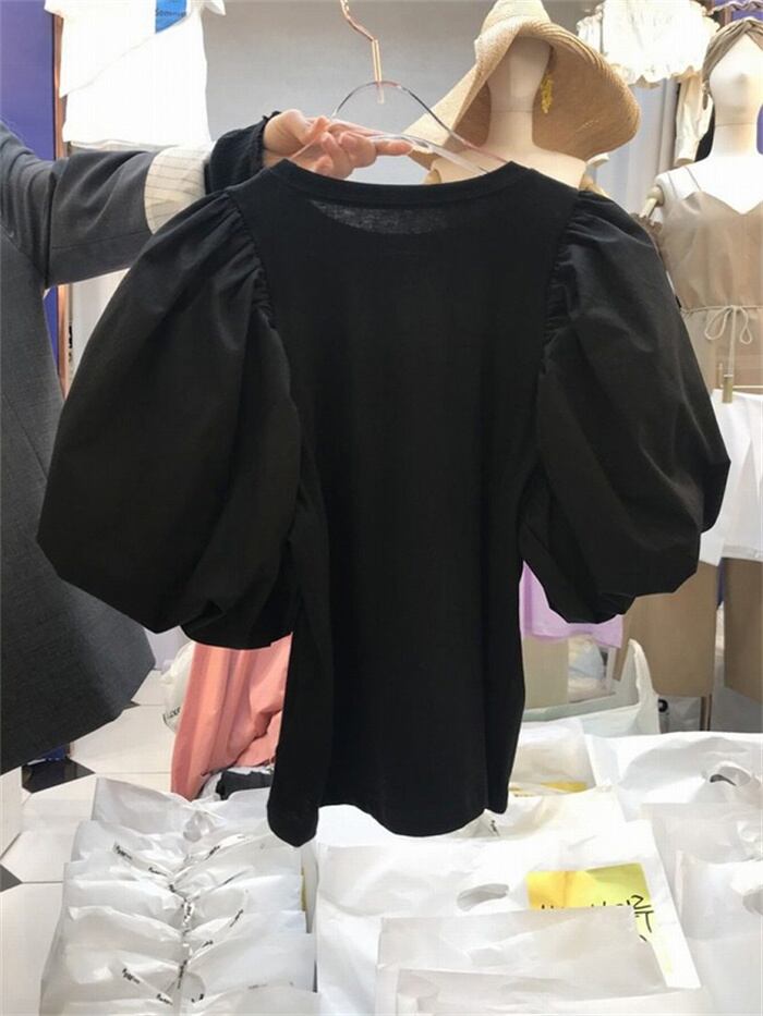 ◎【送料無料】韓国ファッション 全3色 トップス ボリューム袖 切り替え 体型カバー 着痩せ 無地 シンプル