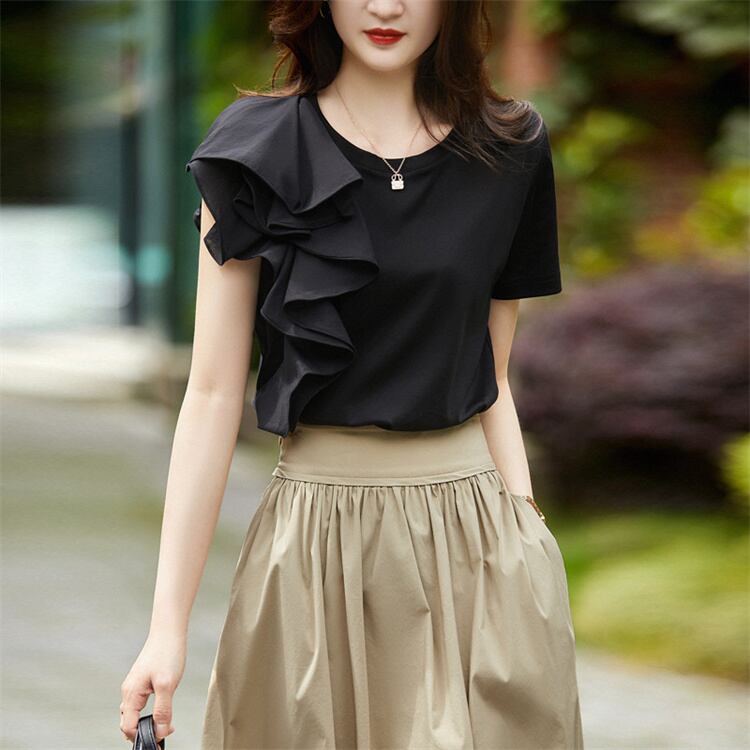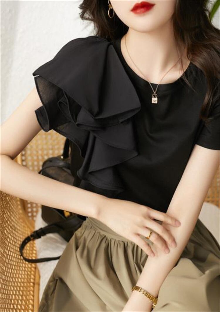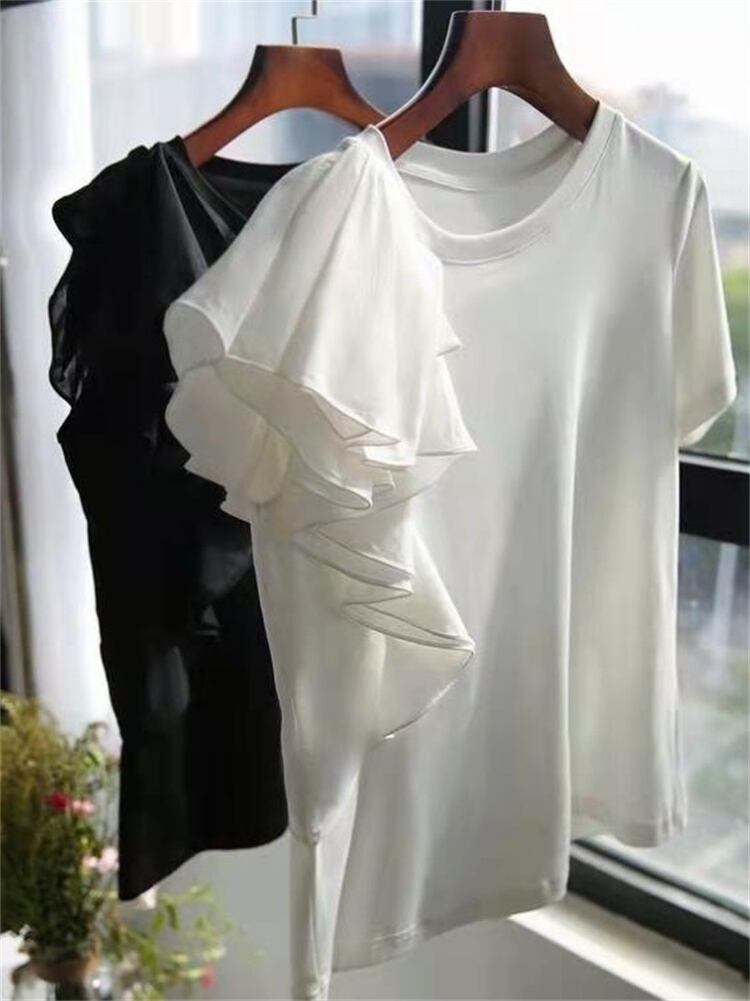 ◎【送料無料】フリル イレギュラー トップス エレガント 上着 デザインセンス 快適である