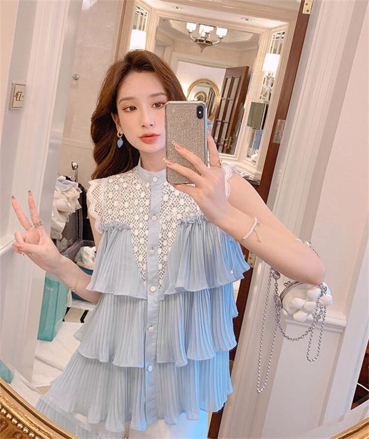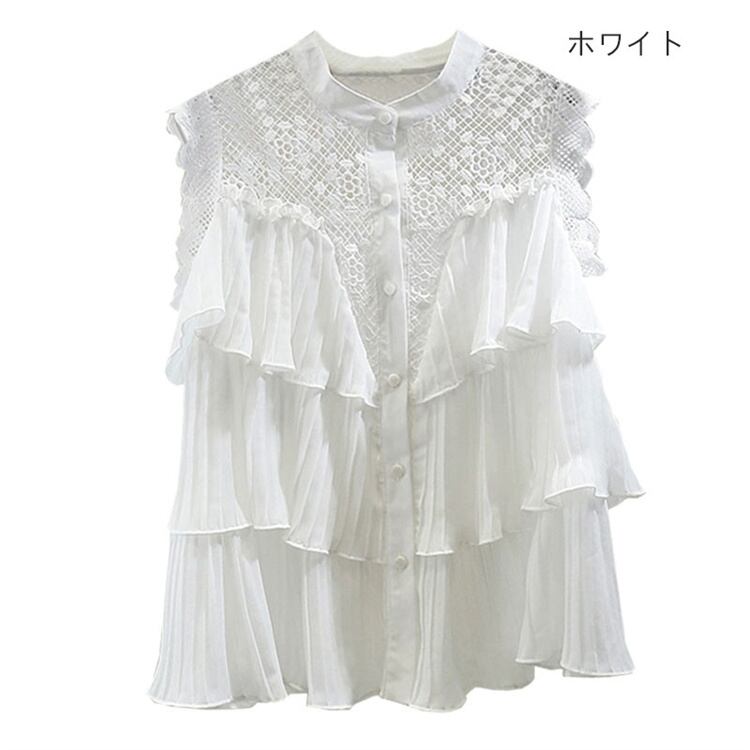 フリル 気質 かぎ針編み ホロー レース 縫付 単体ボタン シャツ デザイン トップス