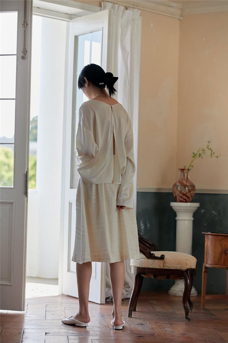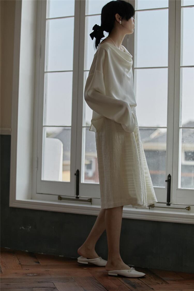 ◎【送料無料】シャツ 長袖 背透けて 2 WAY 2022年春夏新作 レディース スモック 無地