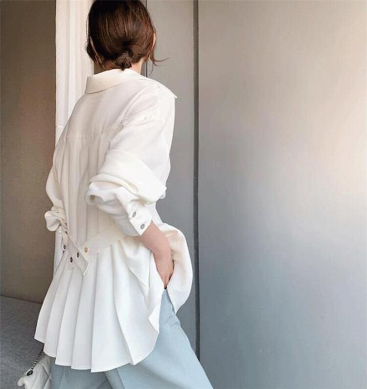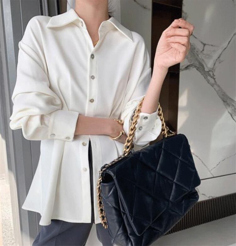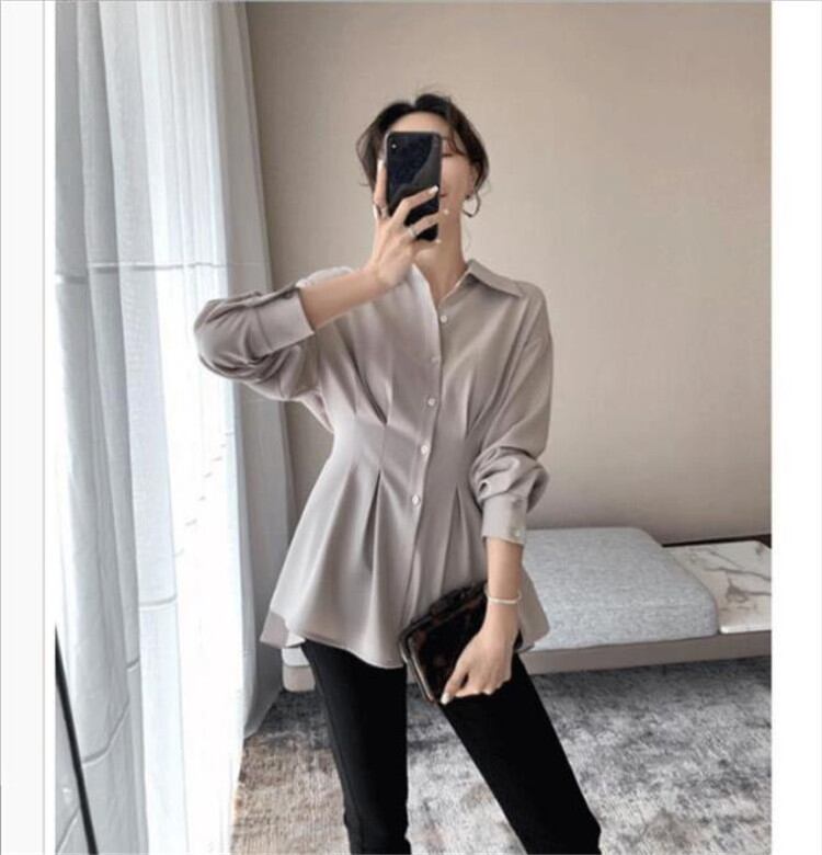 ◎【送料無料】ゆったりする 減齢 トップス ポロネック シフォン 長袖 シャツ 夏