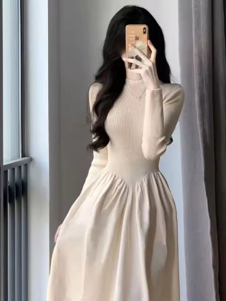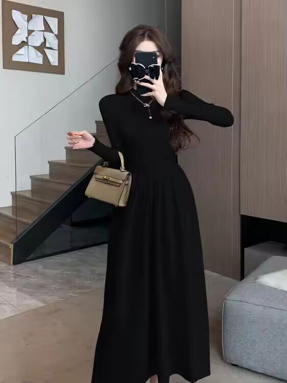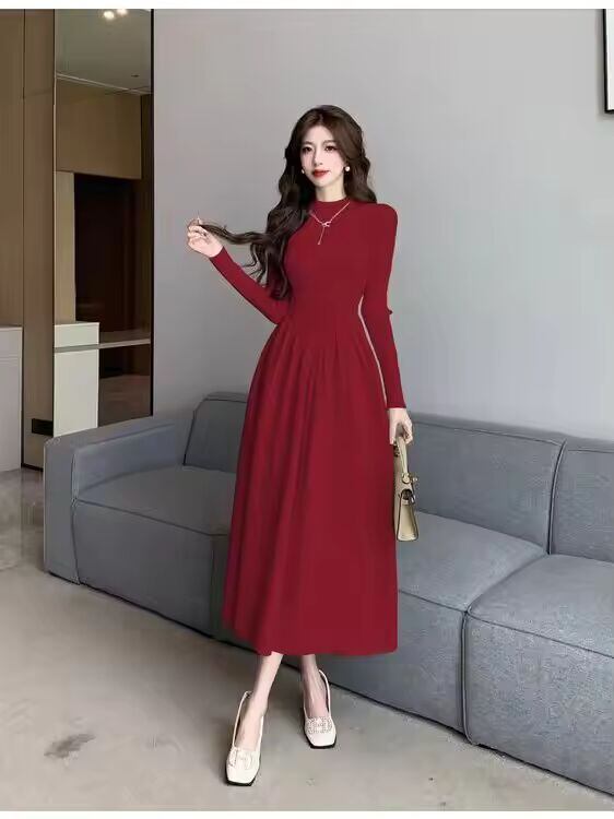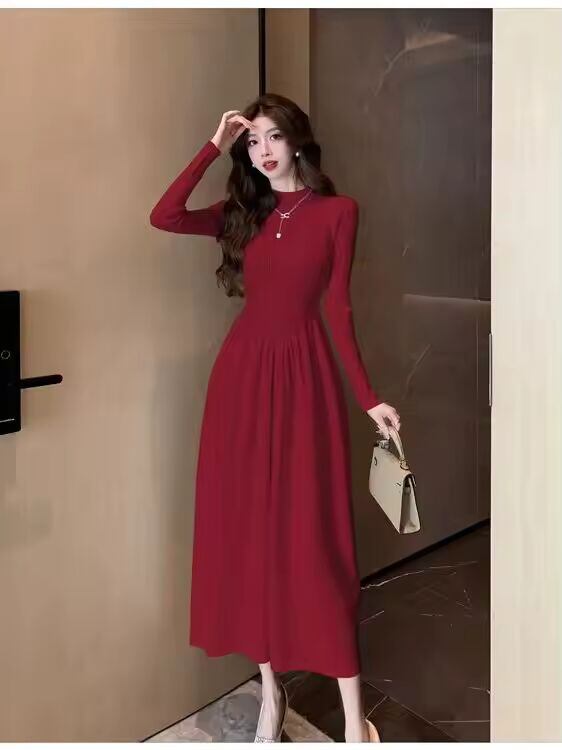 【送料無料◎】 女性のニット A ラインドレスハーフハイカラーロングスカート痩身ウエスト秋冬新スタイルマッチングコート韓国スタイル