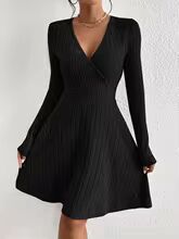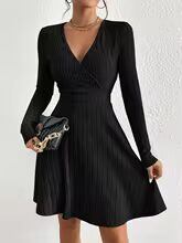 【送料無料◎】 2024年秋冬新作 レディース ニット スリム セクシー ボディコン ワンピース Vネック 長袖 無地 カジュアル ミディ丈 セーターワンピース