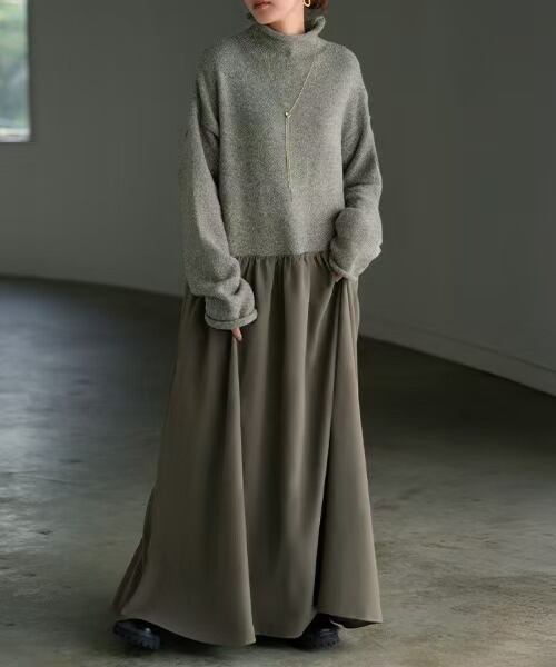 ゆったりシルエットとハイネックのメリハリが可愛らしいニットワンピースです