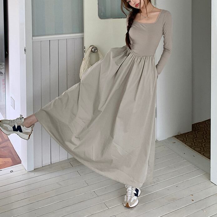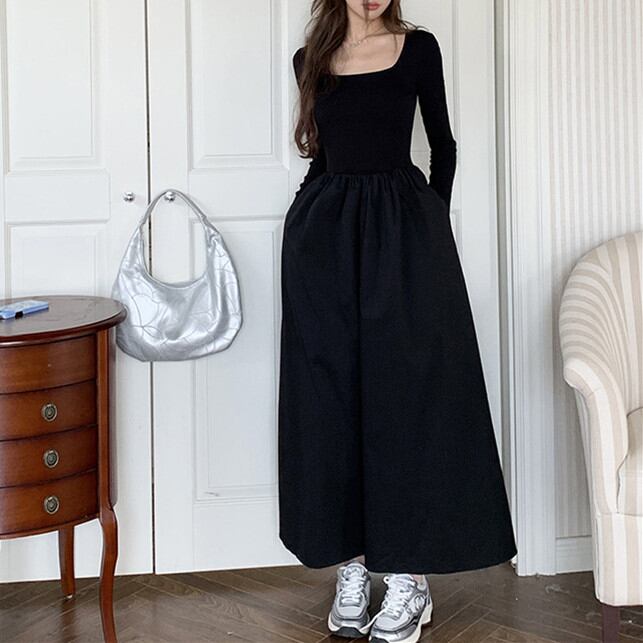 ◎【送料無料】秋新作 ワンピース ドッキングワンピース ロング丈 ニットワンピース 気質 おしゃれ
