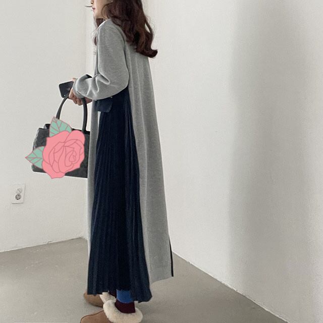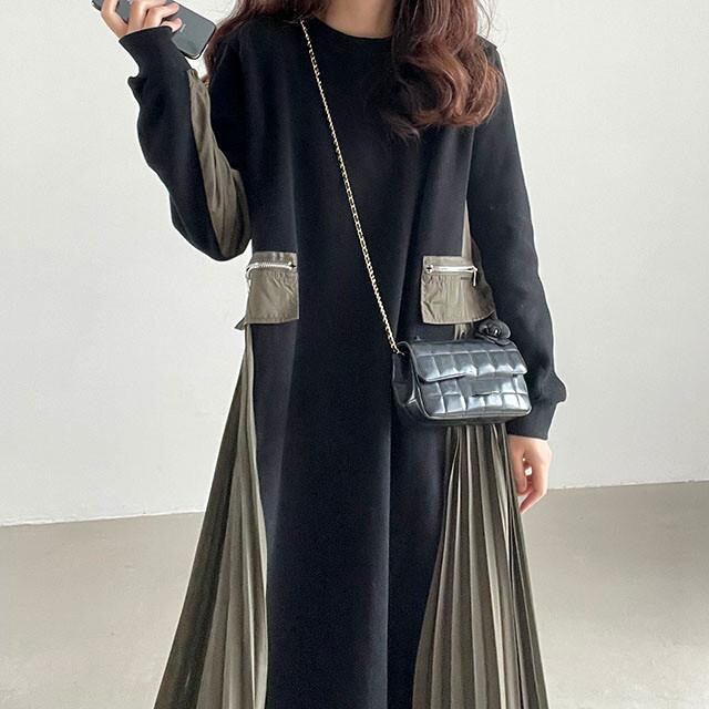 ◎【送料無料】2026年秋新作 ワンピース レディース ロング丈 プリッツワンピース 長袖 気質 ラウンドネック