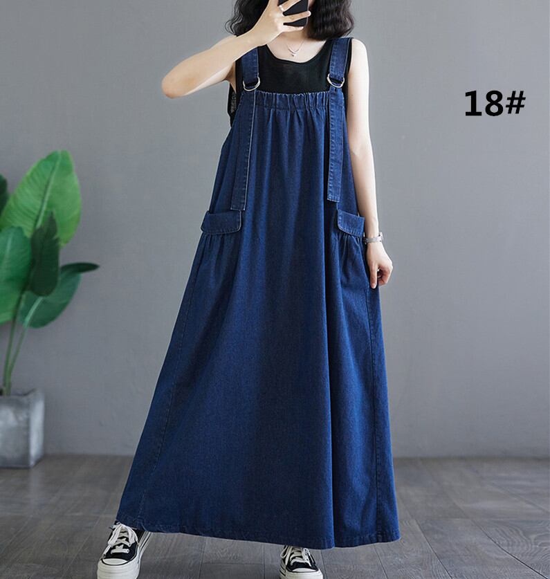 ◎【送料無料】ジャンパースカート デニム デニムワンピース ロング マキシワンピース オールインワン