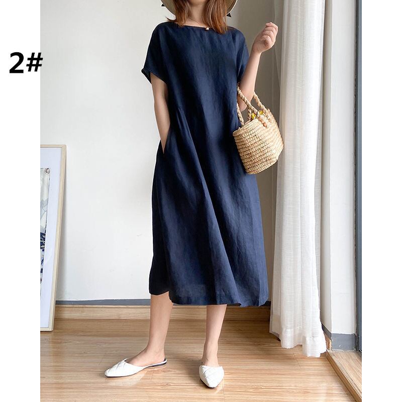 ◎【送料無料】ワンピース 半袖 レディース ゆったり ロング丈 ラウンドネック 体型カバー ナチュラル シンプル デート